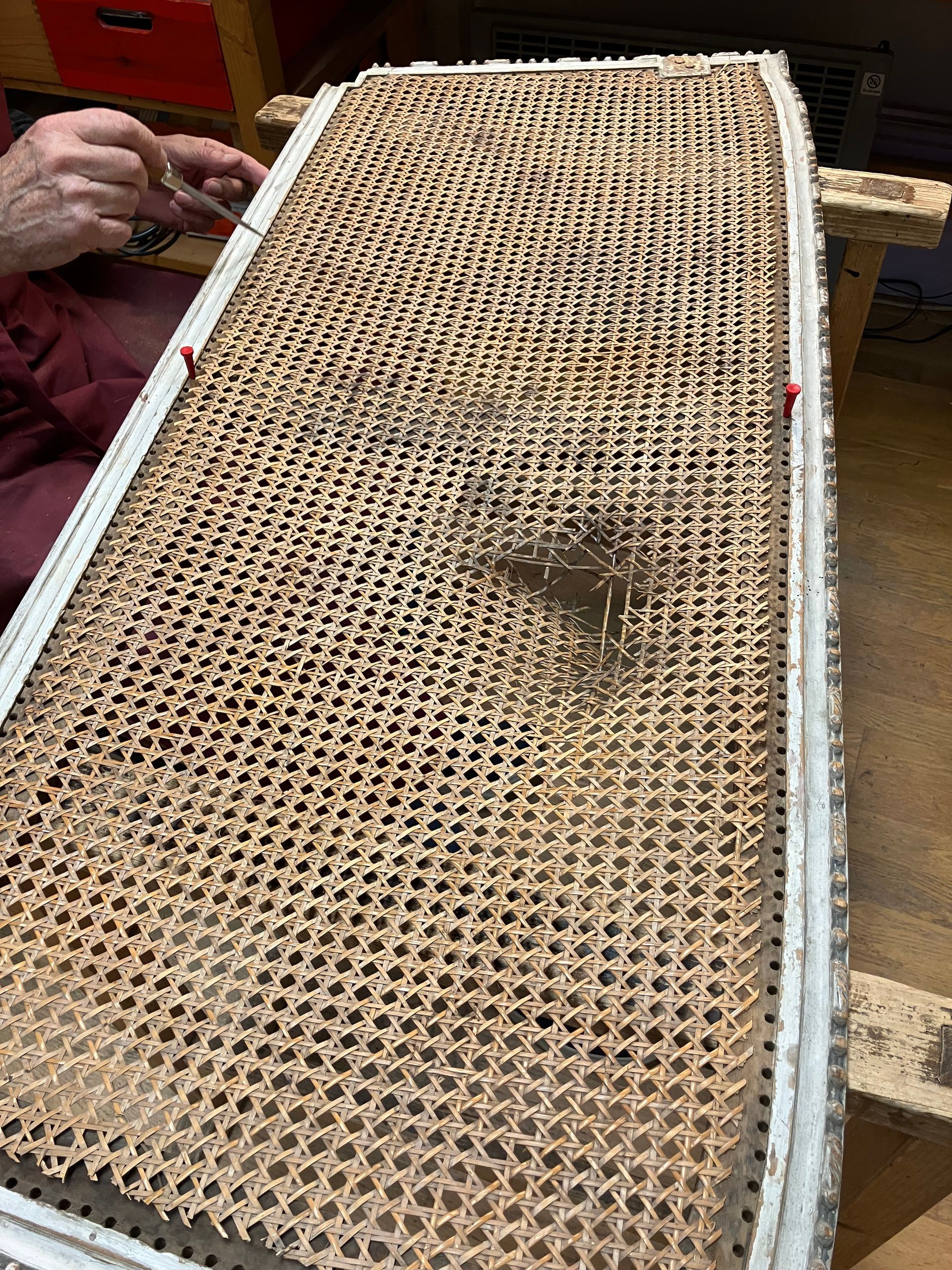 Antike Stühle und Modelle vor 1960 sind mit handgeflochtenem Wiener Geflecht versehen. Man erkennt es an den in den Rahmen gebohrten Löchern. In diese wird das Rattan Geflecht Faden für Faden (auch Stuhlflechtrohr genannt) manuell eingeflochten. Die diagonale Flechtstruktur, die zum Schluss eingewebt wird, gibt dem Muster Stabilität.