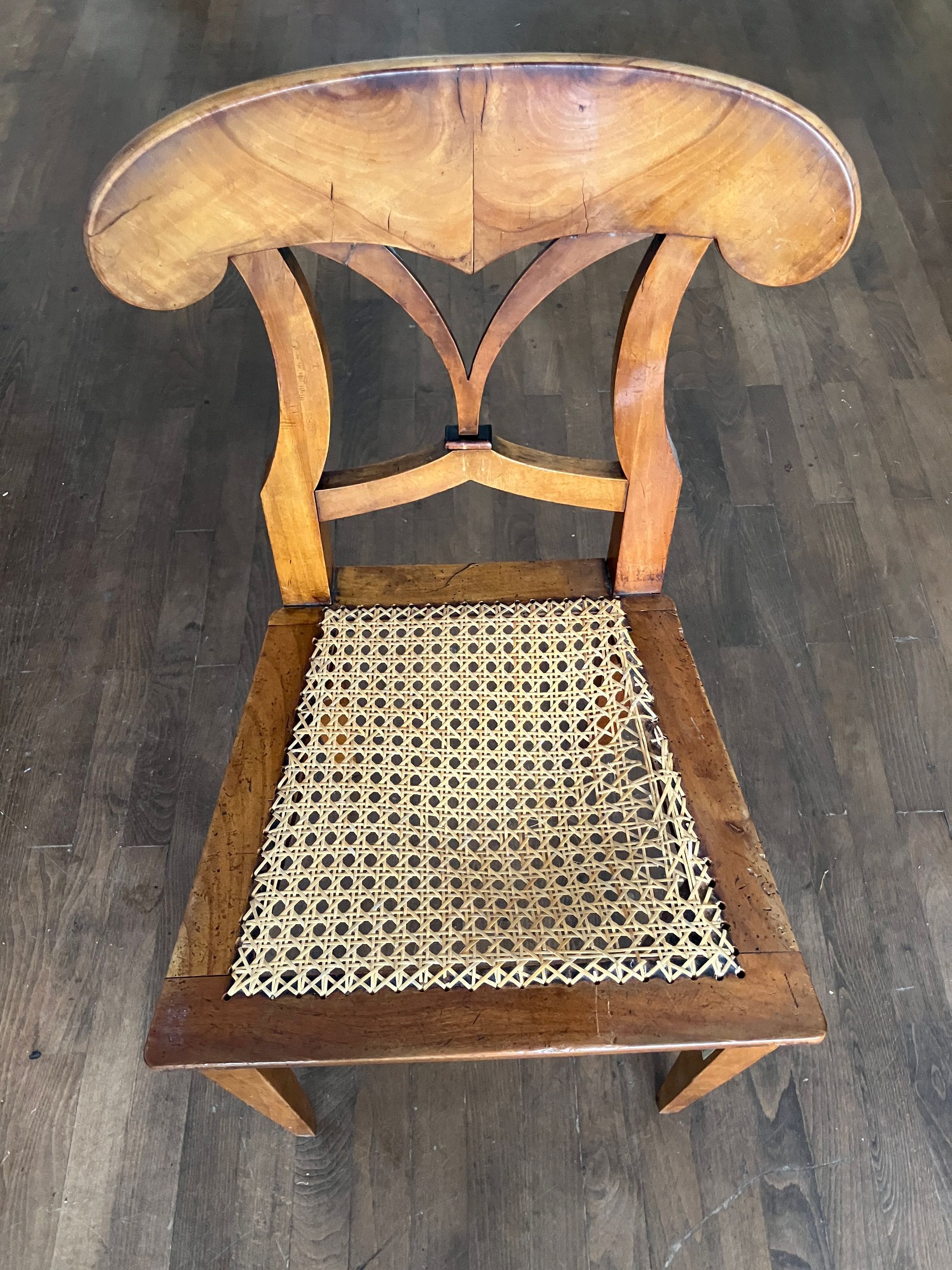 - Biedermeier-Stühle (ca. 1815–1848): schlicht und elegant, die Sitze sind oft mit Wiener Geflecht bespannt.