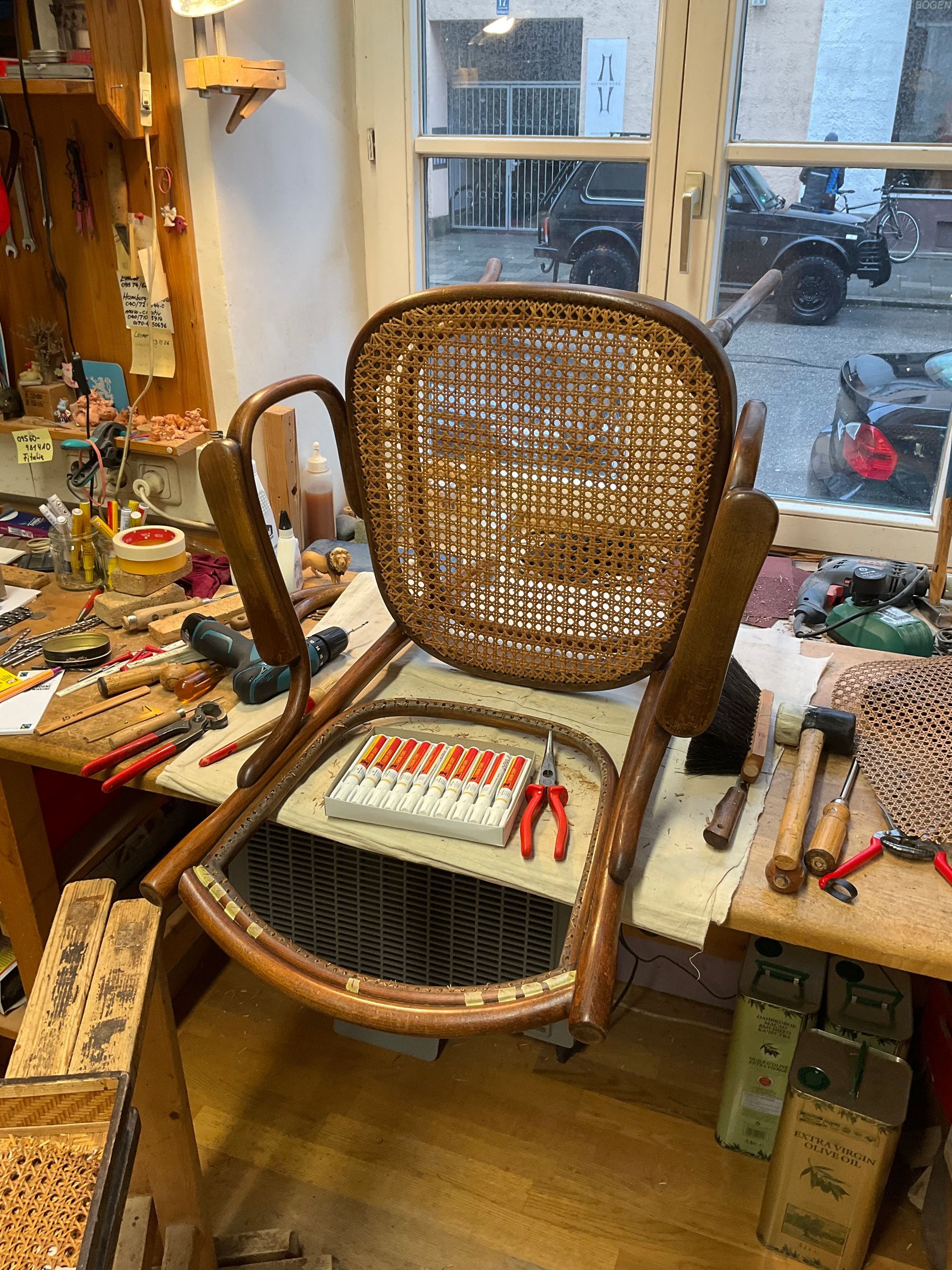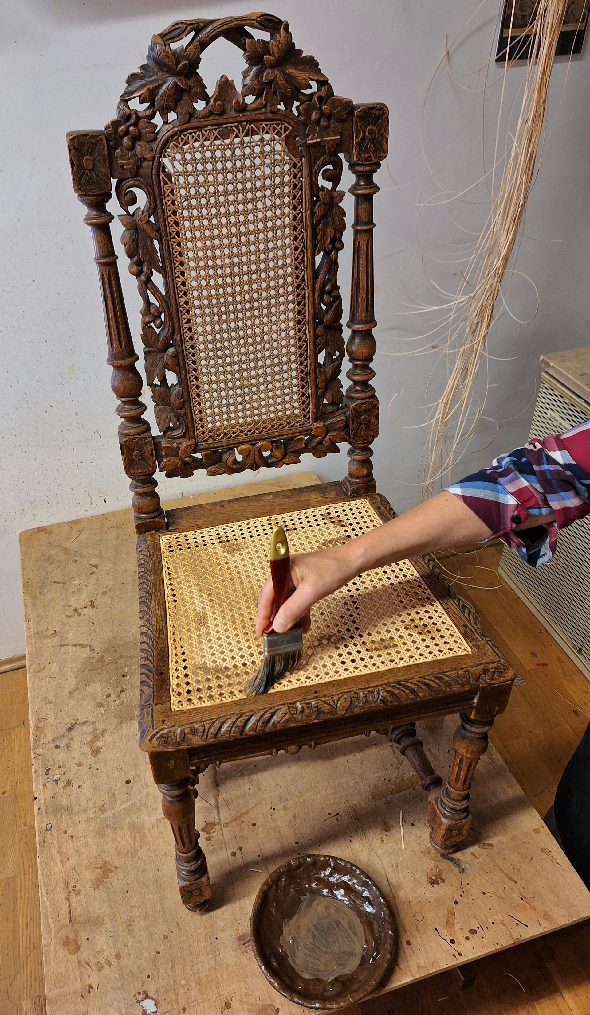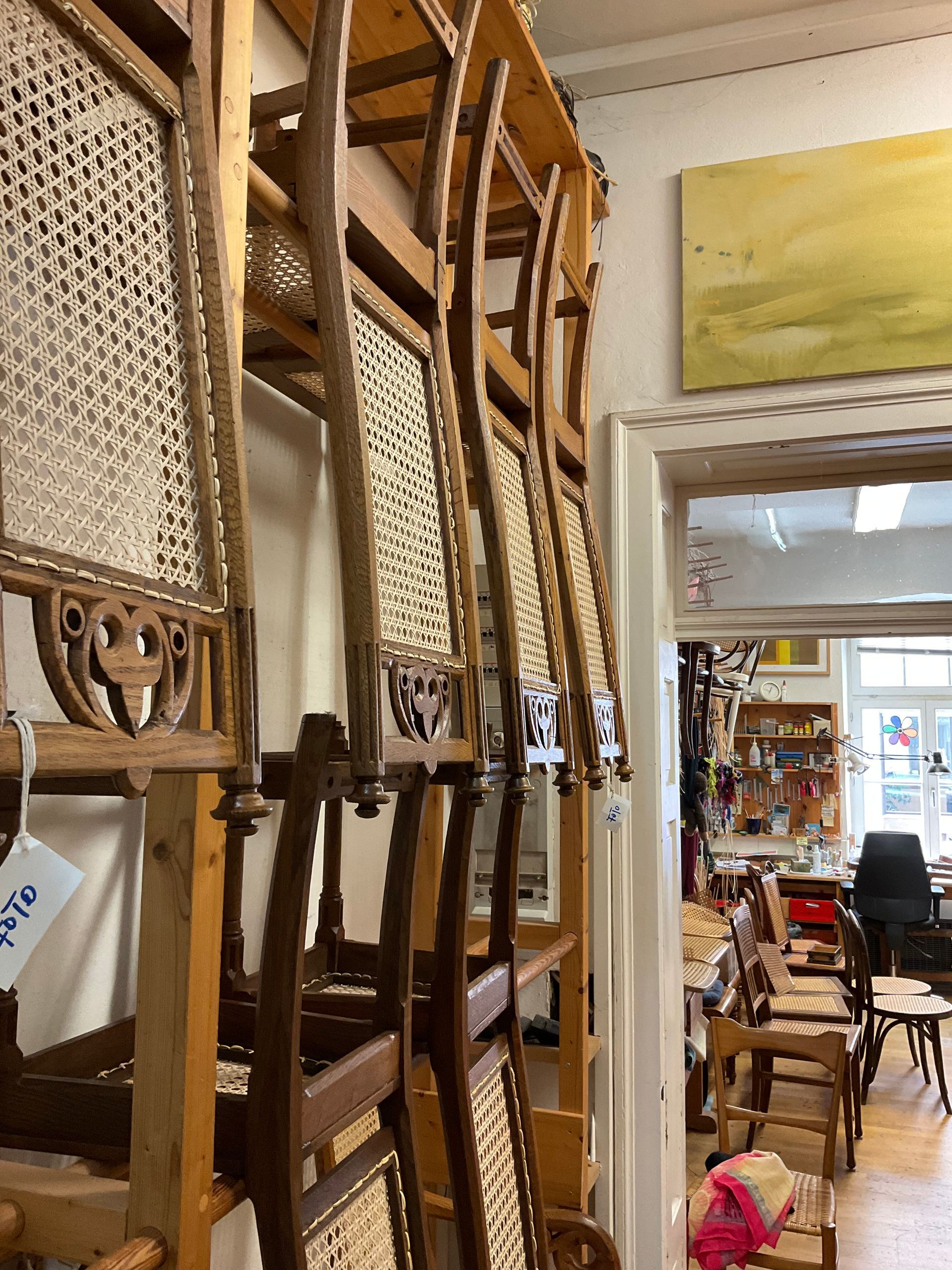 Die Geflechte werden in der Regel mit einer Farb Lasur nachbehandelt, damit die erneuerten Sitz- oder Rückenflächen entsprechend farblich angepasst werden können – Ganz nach Wunsch unserer Kundinnen und Kunden.